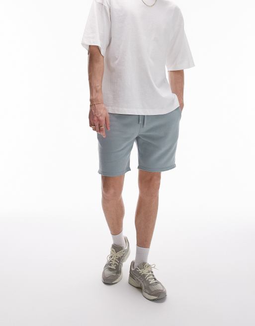 Topman classic fit jersey short with raw hem in sage