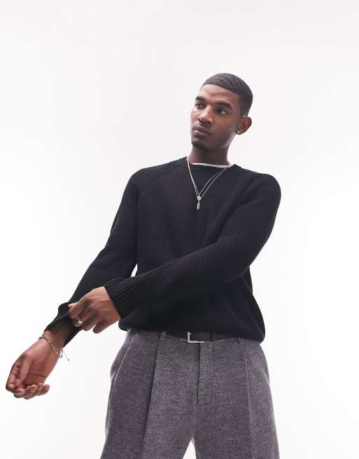 Topman classic knitted fisherman jumper in black