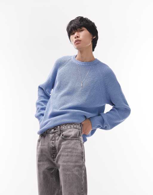 Topman classic knitted fisherman jumper in blue