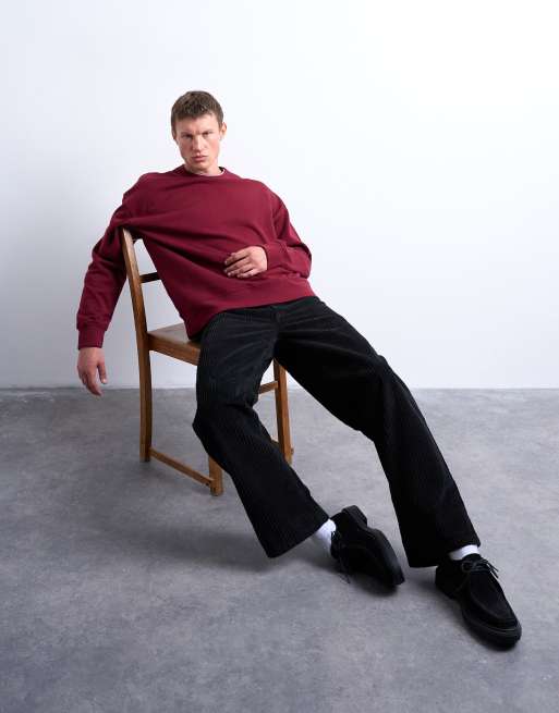 Topman cord baggy trouser in black