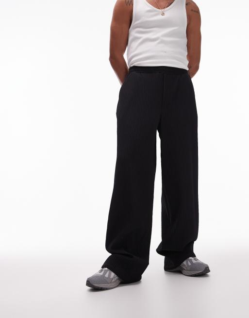 Topman extra wide plisse trousers in black