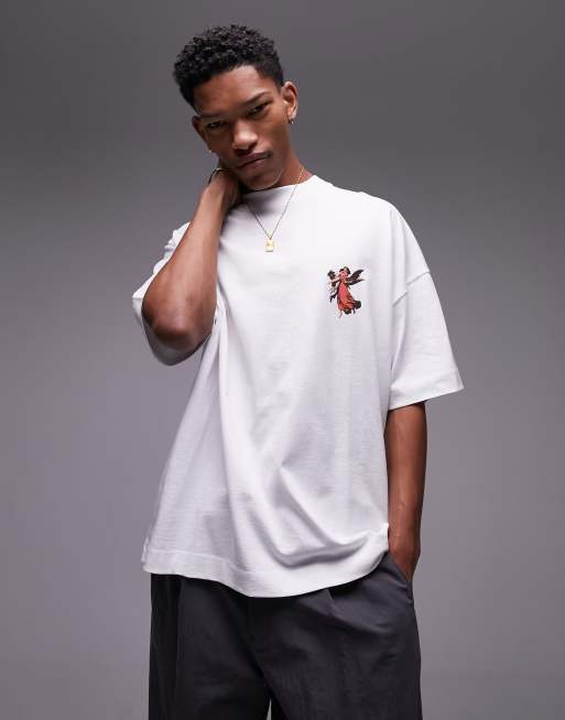 Topman extreme oversized fit t-shirt with front and back angel print in white