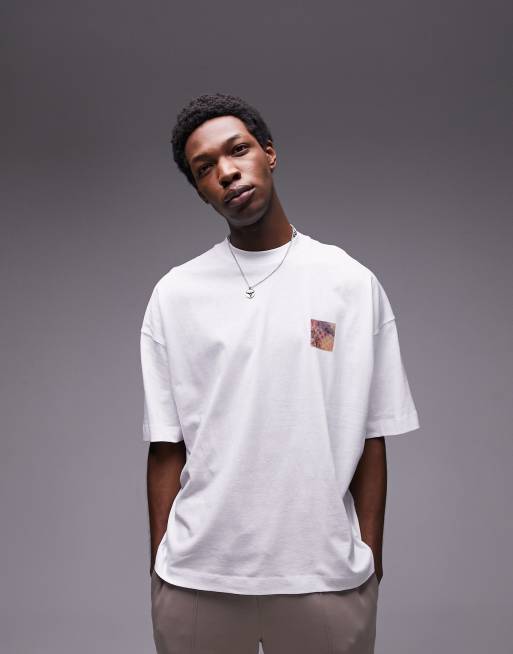 Topman extreme oversized fit t-shirt with front and back desert square print in white