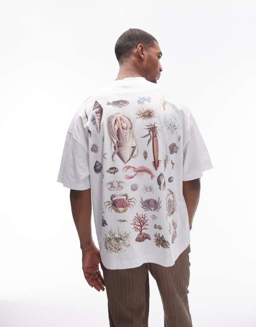 Topman extreme oversized fit t-shirt with front and back sea life print in white