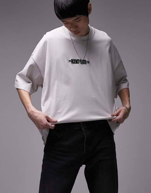 Topman extreme oversized fit t-shirt with known embroidery in light grey
