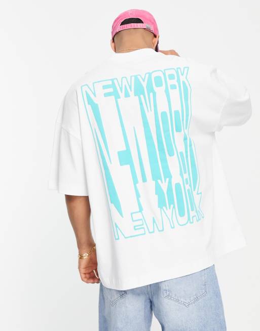 Topman extreme oversized t-shirt with front and back New York stretch raised print in white