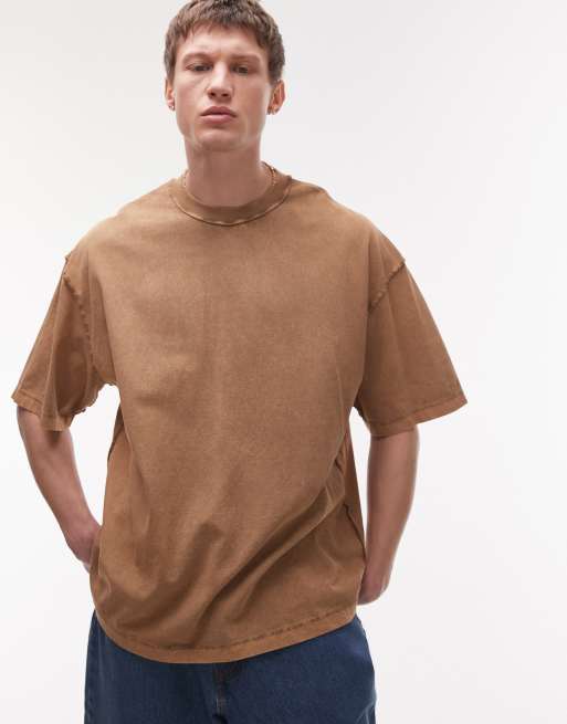 Topman extreme oversized washed raw seam detail t-shirt in brown