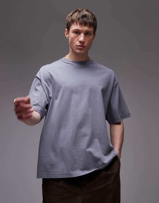 Topman extreme oversized washed raw seam detail t-shirt in grey