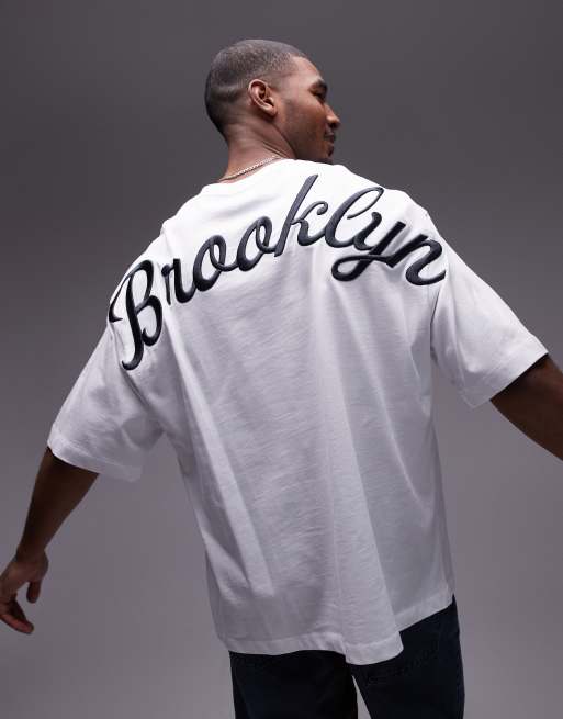 Topman heavyweight extreme oversized fit t-shirt with front and back Brooklyn embroidery in white