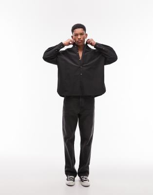 Topman Limited long sleeve oversized pointed collar shirt in black