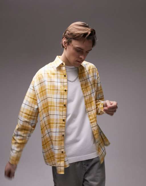 Topman long sleeve super oversized check shirt with embroidery in yellow