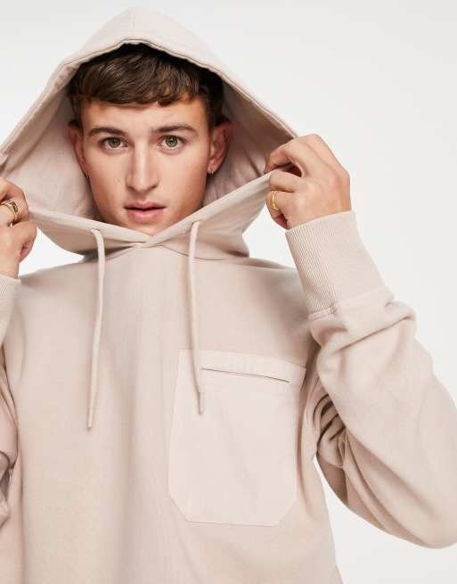 Topman oversized co-ord cargo pocket hoodie in stone