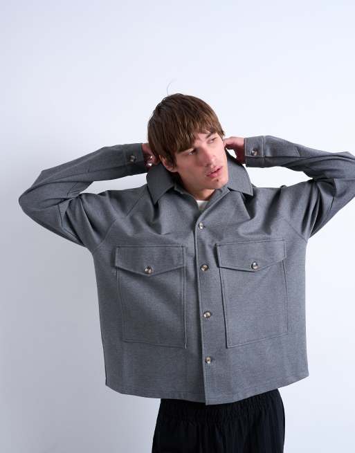 Topman oversized fit interlock jersey jacket in grey