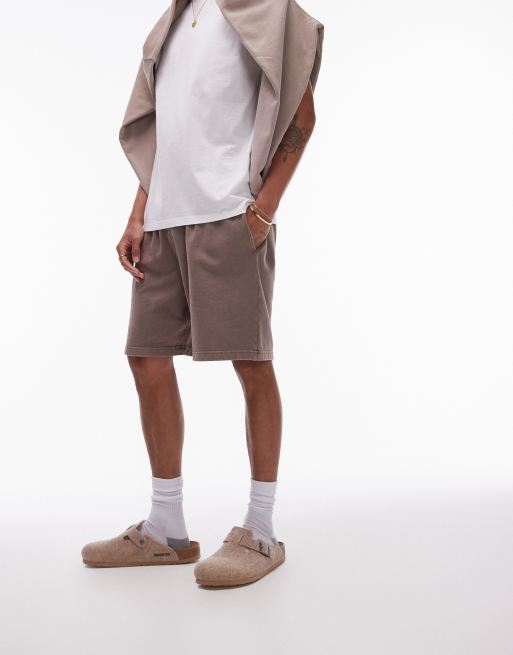Topman oversized fit jersey shorts in washed brown