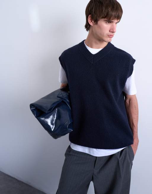 This vest is crafted from a mid-weight knit. This sleeveless design features a V-neck, ribbed trims and is cut with an oversized fit.Product Code: 142120966