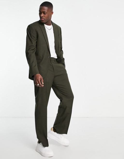 Topman oversized suit jacket and trousers in dark green