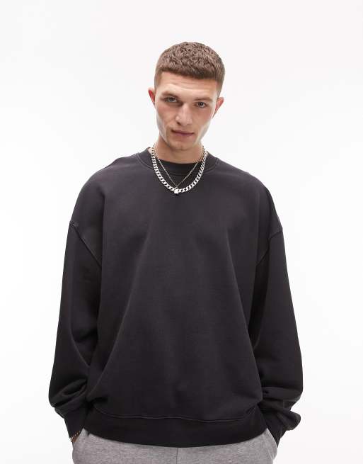 Topman oversized sweatshirt in washed black
