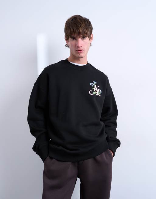 Topman oversized sweatshirt with monogram floral embroidery in black
