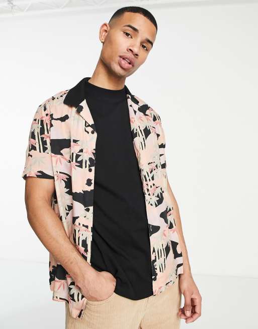 Topman palm camo print shirt in pink with contrast collar