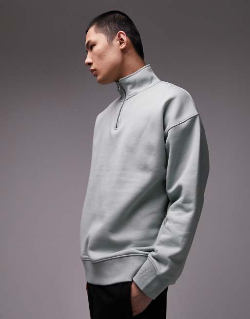 Topman premium heavyweight oversized 1/4 zip sweatshirt in sage