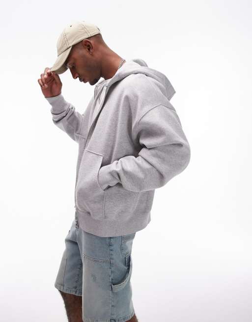 Topman premium heavyweight oversized full zip hoodie in grey marl