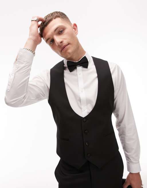 Topman Premium wool mix slim tuxedo waistcoat in black
