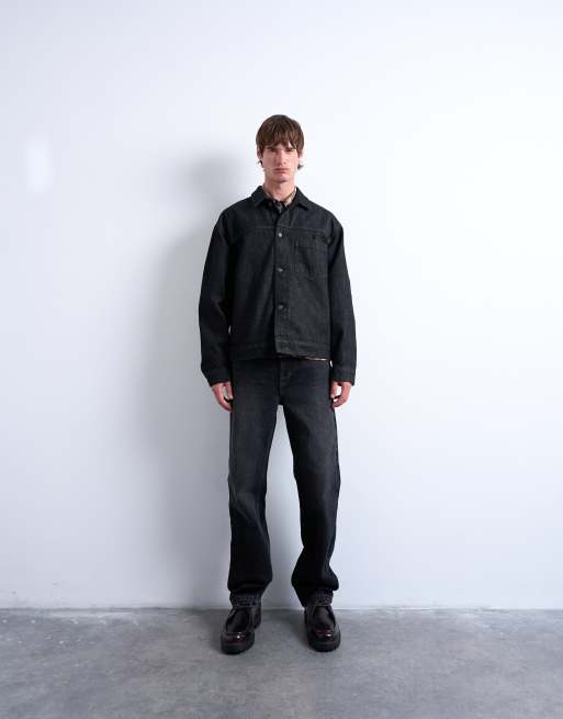 Topman raw denim jacket in black