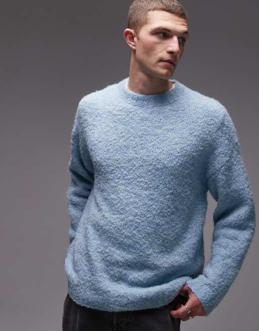 Topman relaxed fit boucle jumper in mid blue