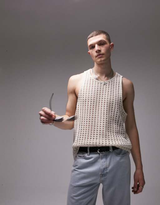 Topman relaxed fit knitted texture tank in ecru