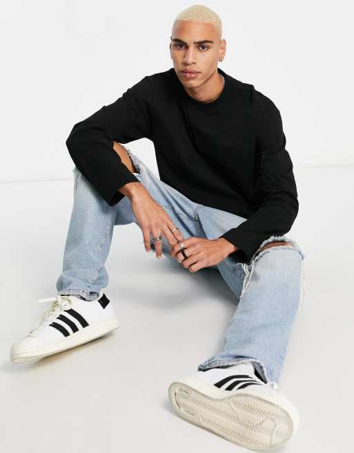 Topman relaxed fit long sleeve t-shirt in black