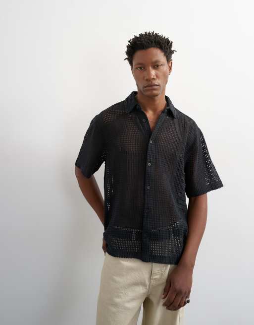 Topman relaxed fit short sleeve woven mesh shirt in black