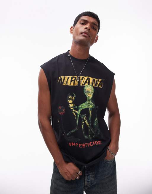 Topman relaxed fit sleeveless tank with Nirvana insect in washed black
