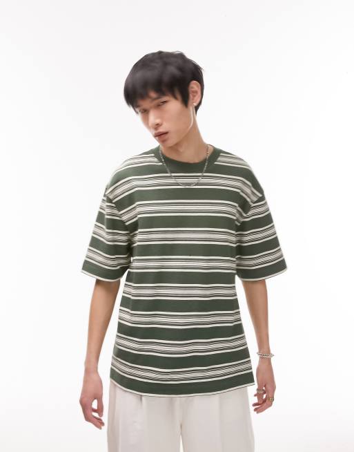 Topman relaxed fit t-shirt with varigated stripe in green
