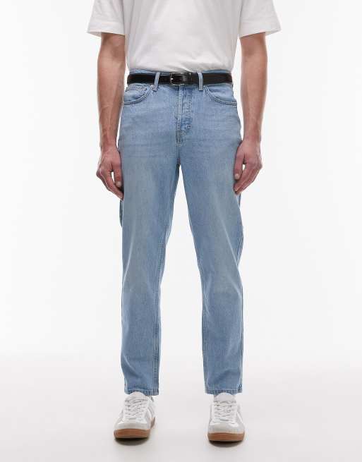 Topman rigid taper jean in light wash blue