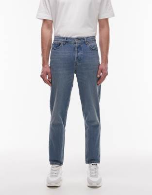 Topman rigid taper jean in mid wash