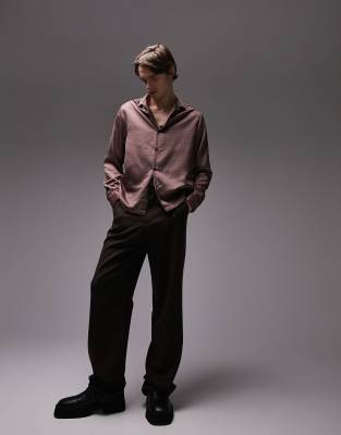 Topman satin geo print shirt in chocolate brown