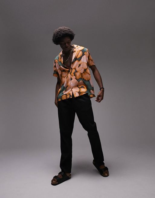 Topman short sleeve regular revere ink print deep v shirt in multi
