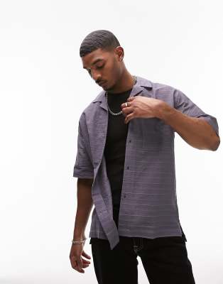 Topman short sleeve relaxed fit revere textured shirt in grey
