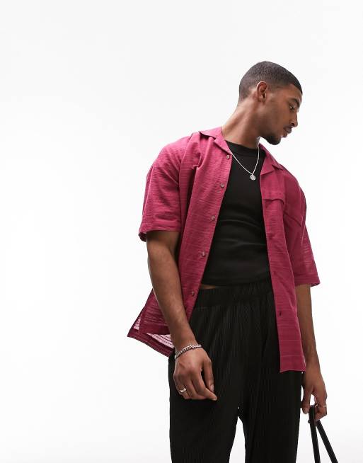 Topman short sleeve relaxed revere textured shirt in burgundy