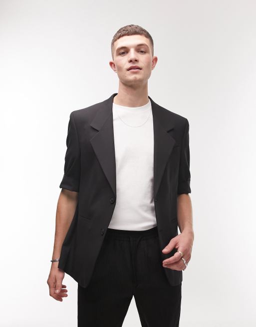 Topman short sleeve suit blazer in black