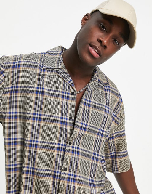 Topman skinny co-ord check in blue and stone