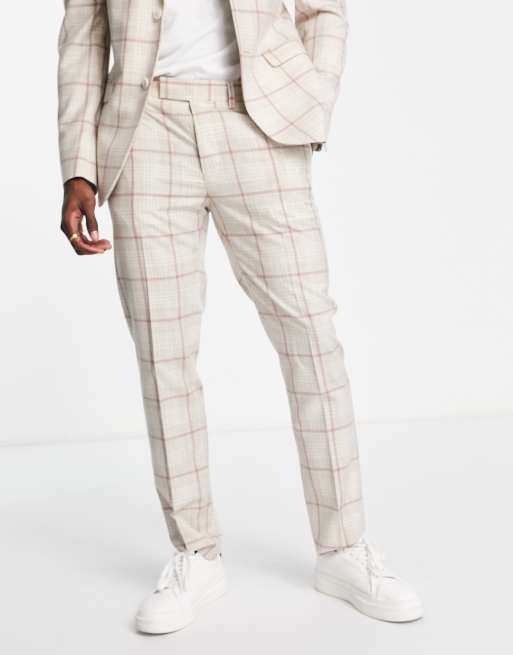 Topman skinny suit trousers in pink check