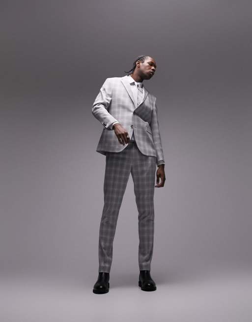 Topman slim fabric interest checked suit jacket in grey