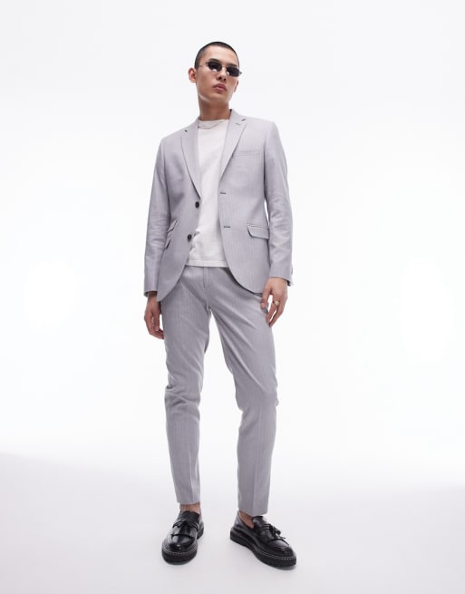 Topman slim herringbone suit jacket and trouser in grey