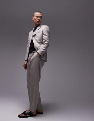 Topman slim linen blend suit in stone