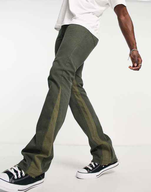 Topman straight flared let down hem jeans with contrast panels in khaki