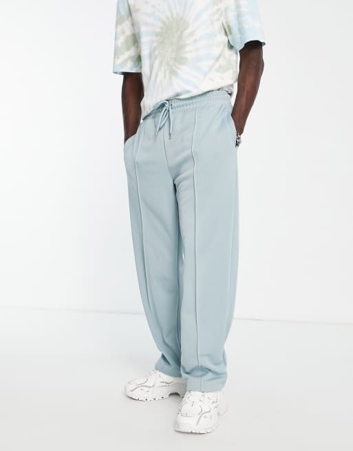 Topman straight leg tricot pin tuck smart jogger in blue