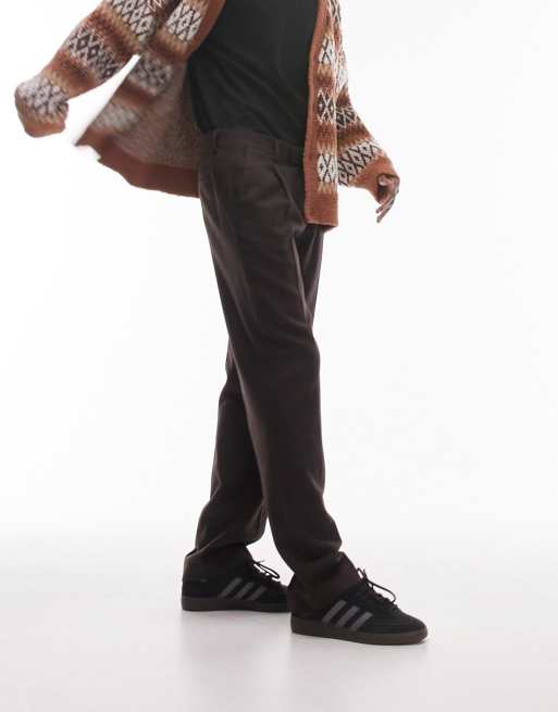 Topman straight wool mix trousers in brown