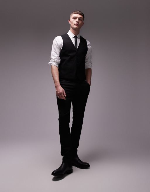 Topman stretch super skinny textured suit trousers in black
