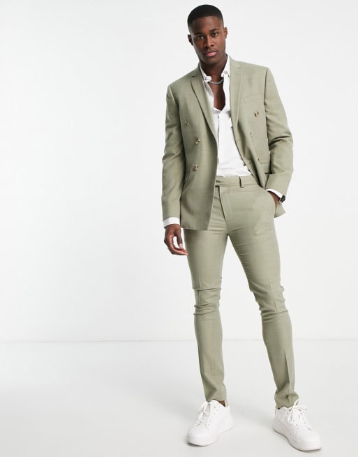 Topman super skinny suit double breasted jacket and trouser in light green